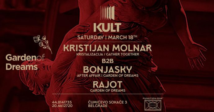Ove subote dance floor klubas KULT biće prepušten jednom od najlepših projekata bosanske elektronske scene. Gardens of Dreams showcase ovoga puta predstavlja specijalan b2b extended set za koji će se pobrinuti Kristijan Molnar i Bonjasky iz sastava After Affair.