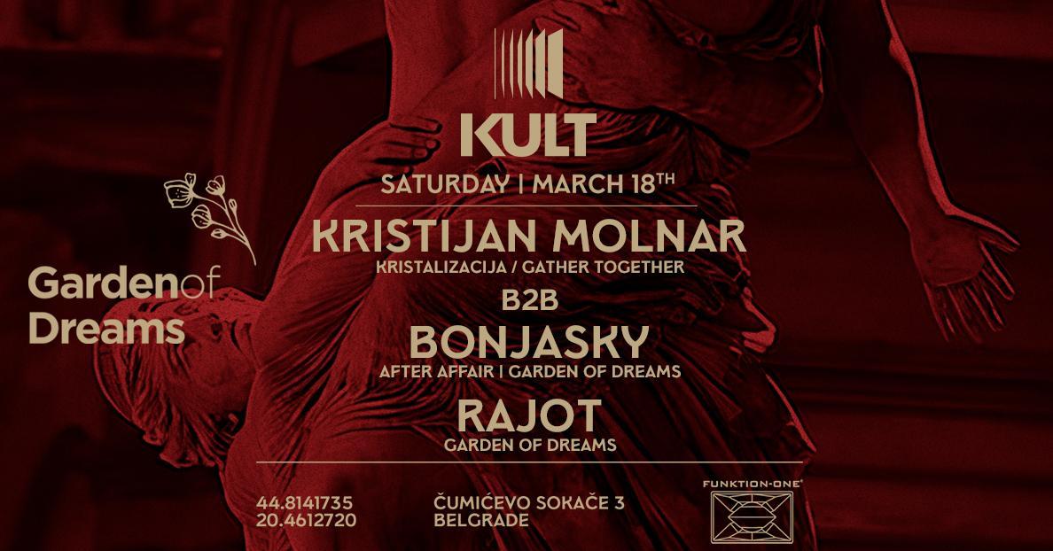 Ove subote dance floor klubas KULT biće prepušten jednom od najlepših projekata bosanske elektronske scene. Gardens of Dreams showcase ovoga puta predstavlja specijalan b2b extended set za koji će se pobrinuti Kristijan Molnar i Bonjasky iz sastava After Affair.