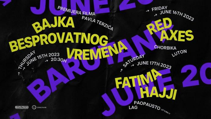 Predstojeći produženi vikend u Barutani obeležiće dokumentarac “Bajka bespovratnog vremena”, lajv nastup elektronskog indie dvojca Red Axes i gostovanje techno DJ-ice Fatime Hajji.