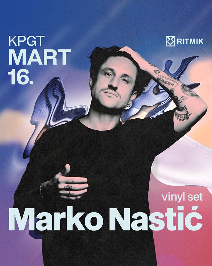 U nesvakidašnjem okruženju umetničkog centra KPGT, u subotu 16. marta očekuje nas još jedan događaj u Ritmik organizaciji. Posle više od dva meseca, pred beogradsku publiku staće ni manje ni više nego legenda domaće scene, umetnik na delu – Marko Nastić. I to ne u običnom setu, već kao poseban prikaz svoje kolekcije ploča.