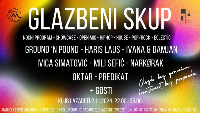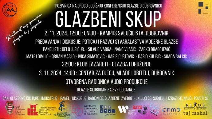 Ovo je drugo izdanje konferencije ‘Glazbeni Skup‘, posvećene poticanju razvoja talenta i stvaralaštva u modernoj muzici. Ova konferencija okuplja muzičare, tekstopisce, producente i ostale stručnjake iz industrije kako bi razmenom znanja i iskustava otvorili nove prilike za kreativnost i inovacije.