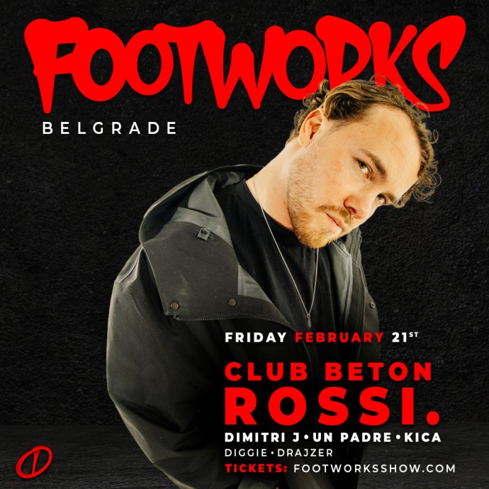 Jedan od vodećih brendova u regionu, Footworks Show, poznat po vrhunskim house žurkama, ponosno predstavlja svoj sledeći veliki show! Ovog puta, specijalni gost i headliner je Rossi., inovator londonske house scene, čiji setovi i produkcija osvajaju publiku širom sveta.