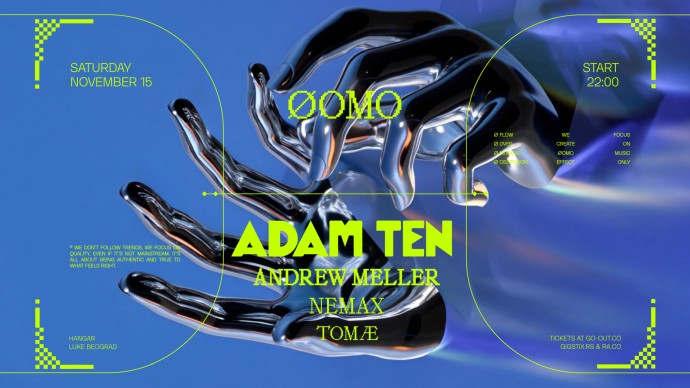 Ovog 15. novembra, Hangar u Luci Beograd pretvara se u mesto muzičkog spektakla. Najtraženiji DJ i producent Adam Ten dolazi sa svojim premijernim setom prvi put u naš grad. Ovaj istaknuti umetnik, sa svojim jedinstvenim zvukom, osvojio je plesne podijume širom sveta i obećava noć ispunjenu energijom, emocijama i nezaboravnim muzičkim putovanjem koje će obeležiti sezonu.